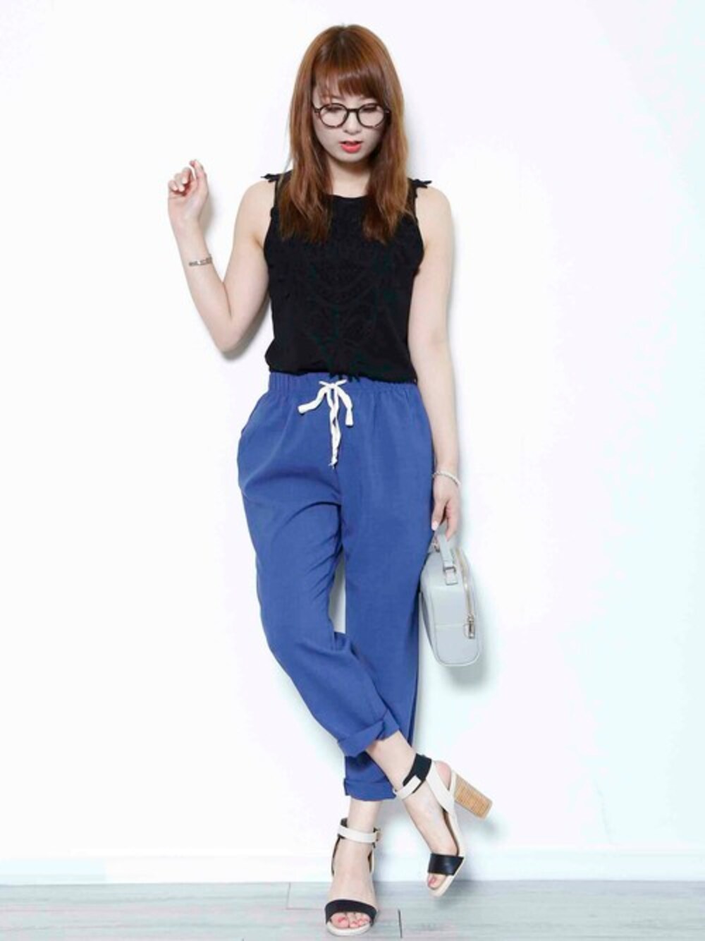 今日のような暑い日は思い切ってノースリーブ! ボトムをブルーにして清涼感あるさわやかなコーデにまとめました。 トップスはフロントに刺繍レースをあしらっていて、一枚でも着られるデザイン。