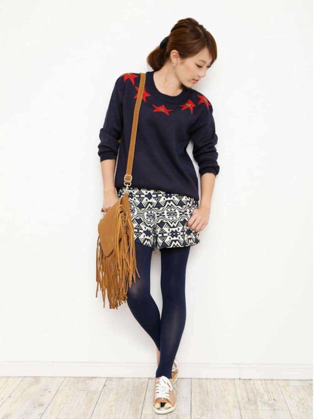 70年代の要素を取り入れてトレンド感を出した秋のスポーティーカジュアル♪ ネイビー×キャメルでまとまりのあるコーディネートに仕上げてみました!