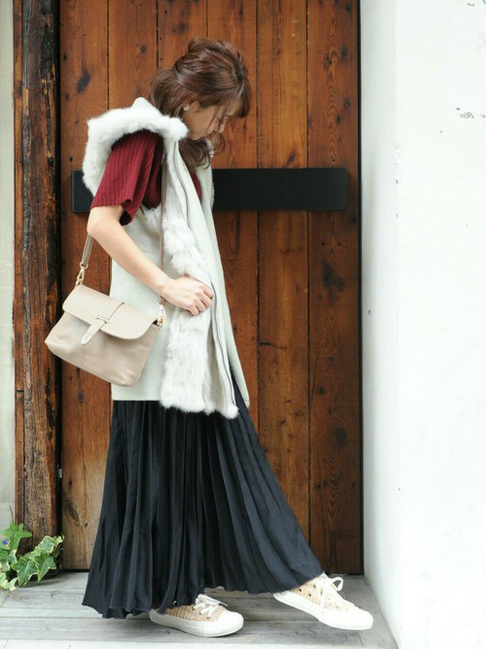 ファーベストとロングスカートのゆるコーデ♪ アクセントカラーにバーガンディーのニットソーを。 ニットですがあまりチクチクせず着心地がよくて◎◎ 他にもニットアイテム入荷しておりますので ぜひチェックしてみてくださいね☆ instagram⇨@plain_clothing