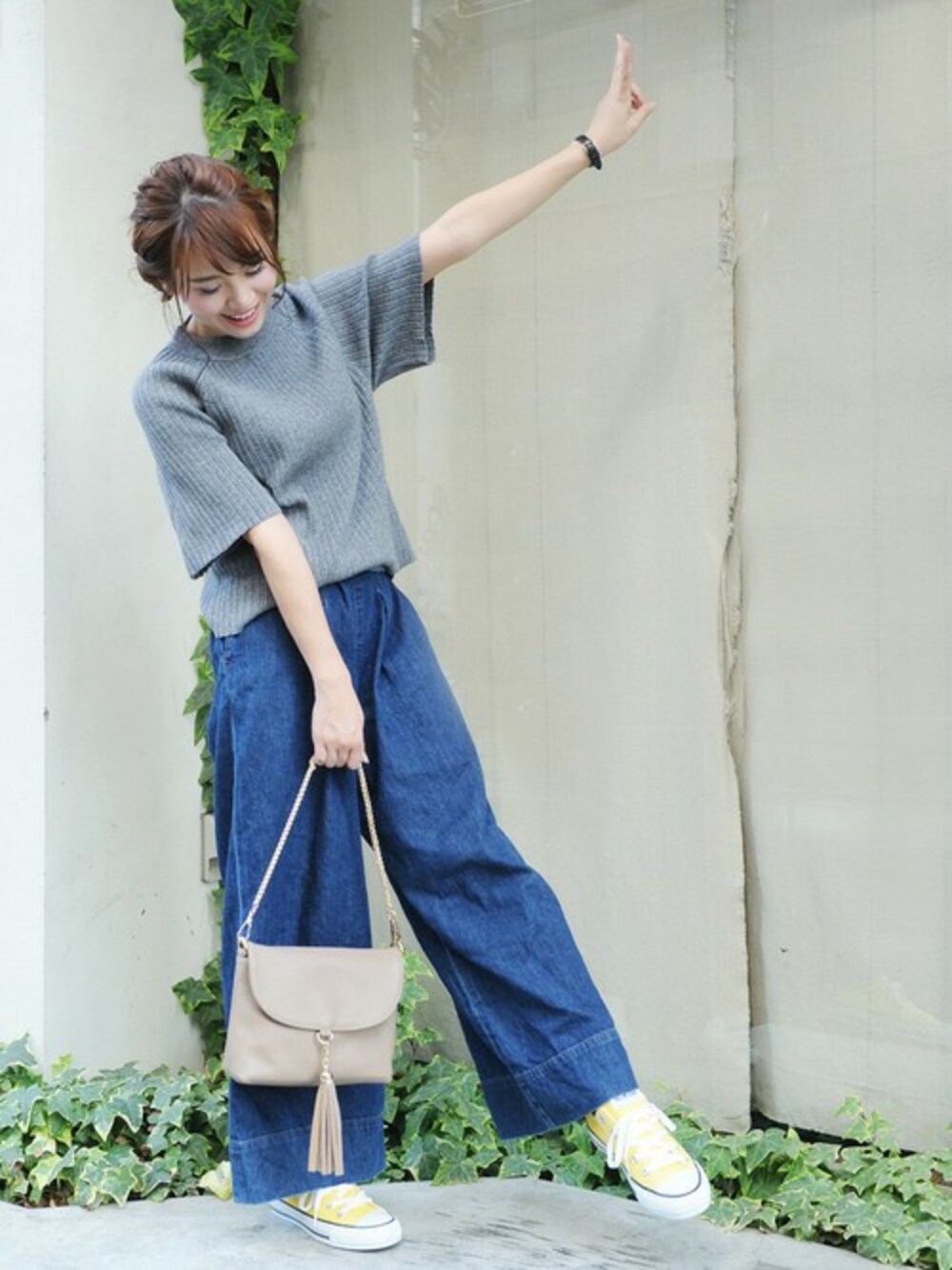 ニット×ワイドパンツコーデ☆ このニットカットソーは 合わせるボトムスを選ばないおすすめの一枚です◎ 暗くなりがちな秋コーデに黄色のコンバースをプラス♪ このバッグはショルダーバッグとしてもお使い頂けます! 今ならこのバッグがSaleでお買い得に☆