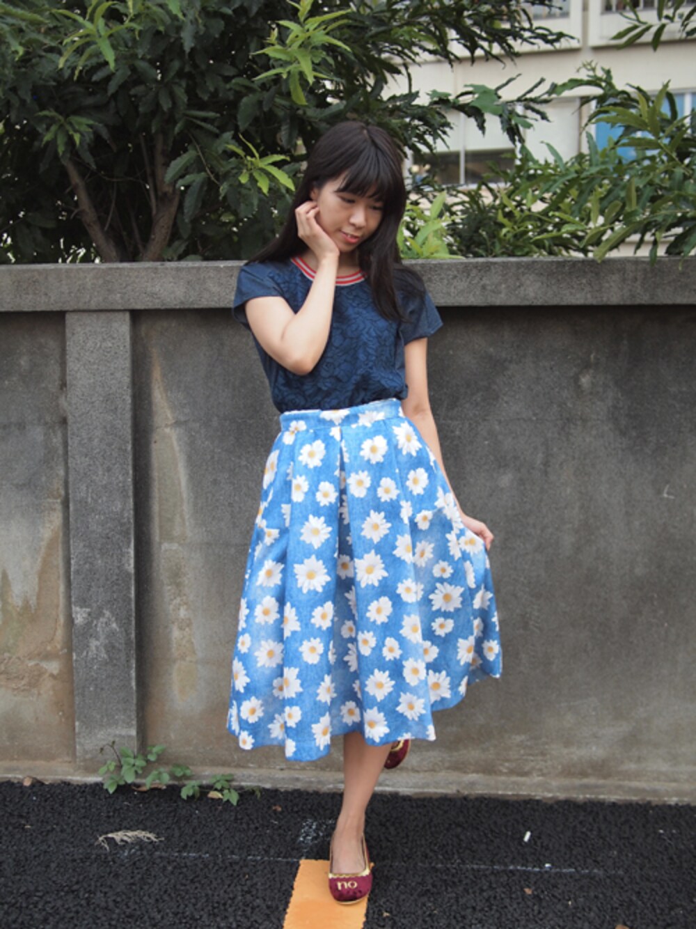 こんにちは、ななこ氏ですよฅ^._.^ฅ 自分の日焼けが眩しい。そんな今日このごろ。 そして、みなさん!夏バテには気をつけましょう!私は土日にダウンしてました。笑 夏は暑いけど、クーラーで冷えるから暖かい飲み物を飲まないと、身体が冷えたりむくんだりするみたいですよ!怖い(((∩'ω'∩))) では、コーディネートのご紹介です♩ こちらの白いお花が可愛いロングスカート、doll up oopsのものです♩ガーリーだけど、上品なのでオススメ♩ そこにボーイッシュだけどレースで甘カジなトップスをチョイス♩ 合わせたフラットシューズは安定のイレチョでございます♡ このこはちょっとシンプルで合わせやすい!笑 ではではまた明日♩