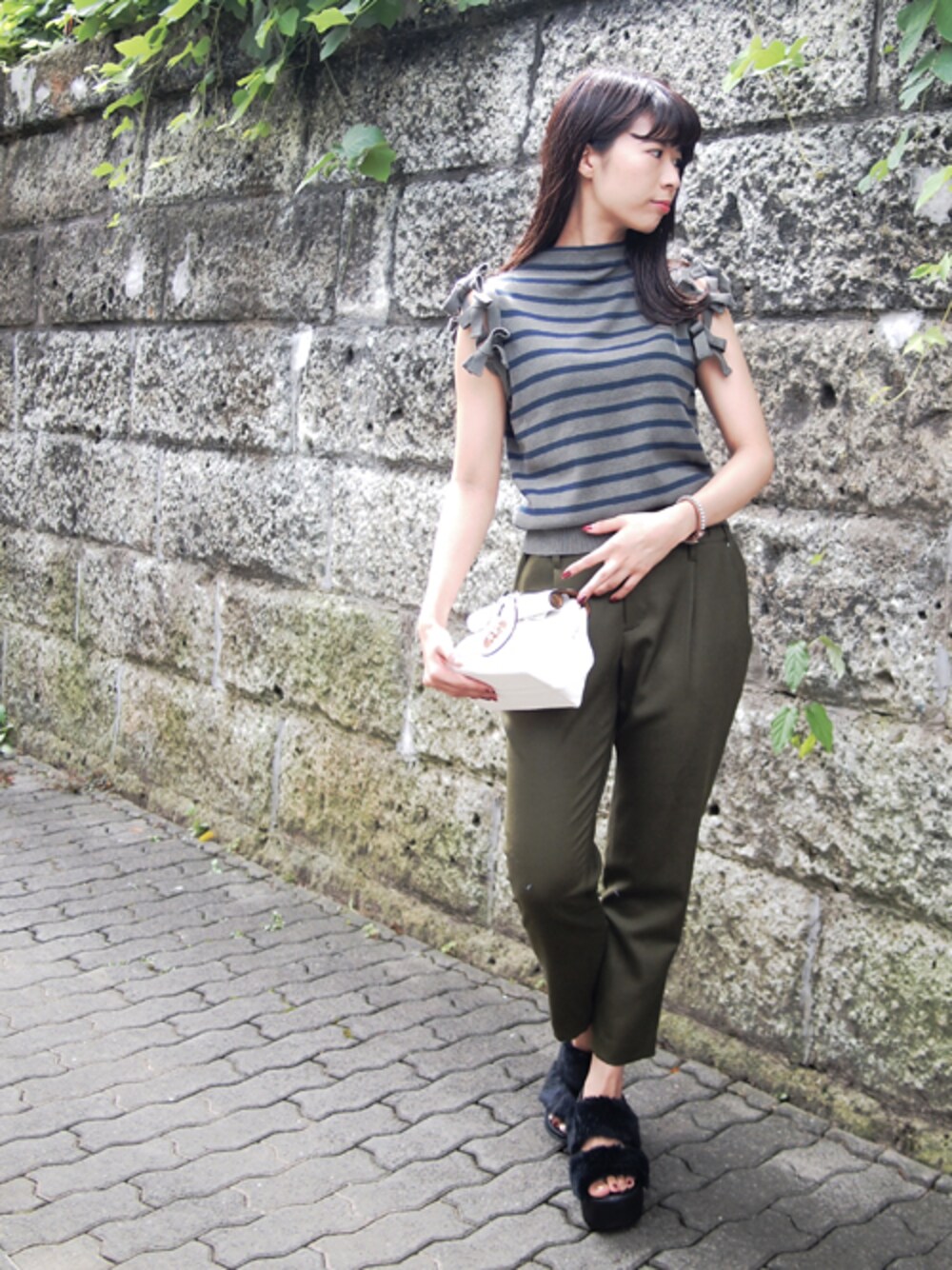 ななこしですฅ^._.^ฅ 昨日まで雨がザンザ振りでしたが 今日は午後から晴れてなんだか とても満足な、ななこしです。 ペットの猫ちゃんが大雨だと騒ぐので、若干うるさいですが、メリーゴーランドしてあげると、ビックリして椅子の下に逃げて静かになるので、定期的に人間遊園地やってます。笑 それでは、コーディネートのご紹介! 最近、パンツスタイルハマってます。 足がむちむちしてるので、スカートばっかりだったんですが、この季節、布地の面積が恋しくなりますよね? そんな想いのこもったコーディネートです♡