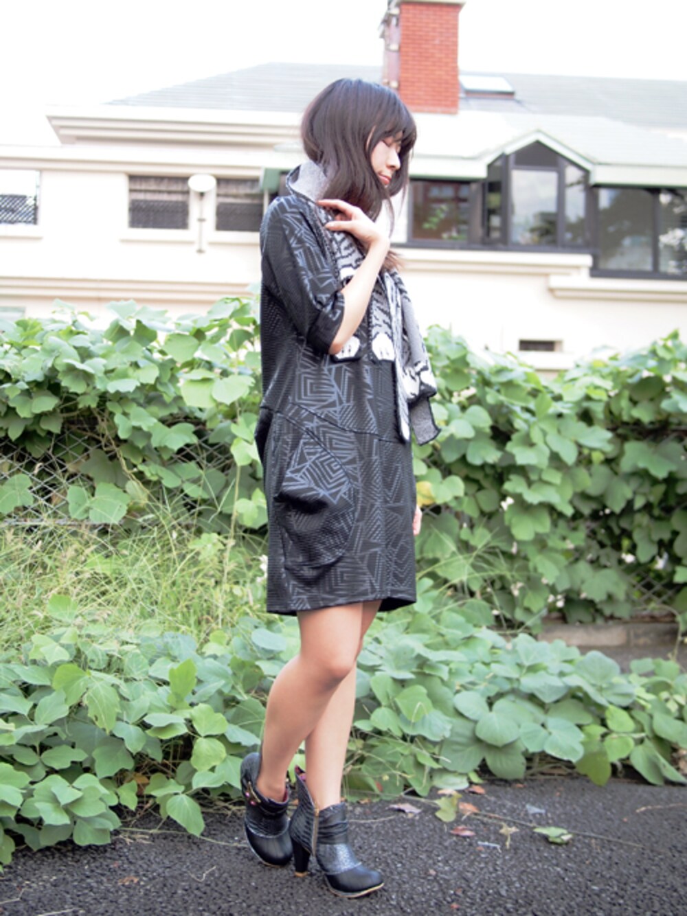 ななこ☻のワンピース「diamond-bar 立体ポケットジオメトリック柄ワンピース」を使ったコーディネート