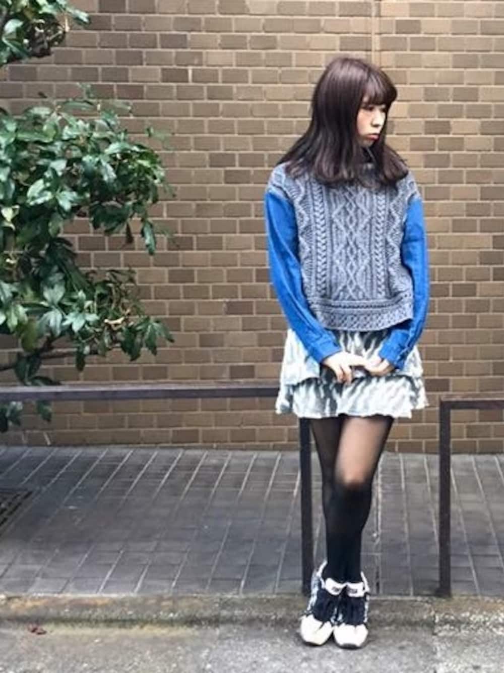 こんばんは、ななこしですฅ^._.^ฅ だんだん暖かくもなり、ちょっぴりお散歩気分のななこしです。 私、フリルかフレアのミニスカートが大好きなんですが、まさにこのスカート はヒットです!!二色展開です♪ ゴムがしっかりしているので、ウエストマークが綺麗に出るのでそこも好き! トップスはニットとシャツがドッキングしたもの♪ 個性的で可愛いです♪ だんだんコートがいらない気候になってくると思うので、中のオシャレも重用ですね! では、このへんで♪