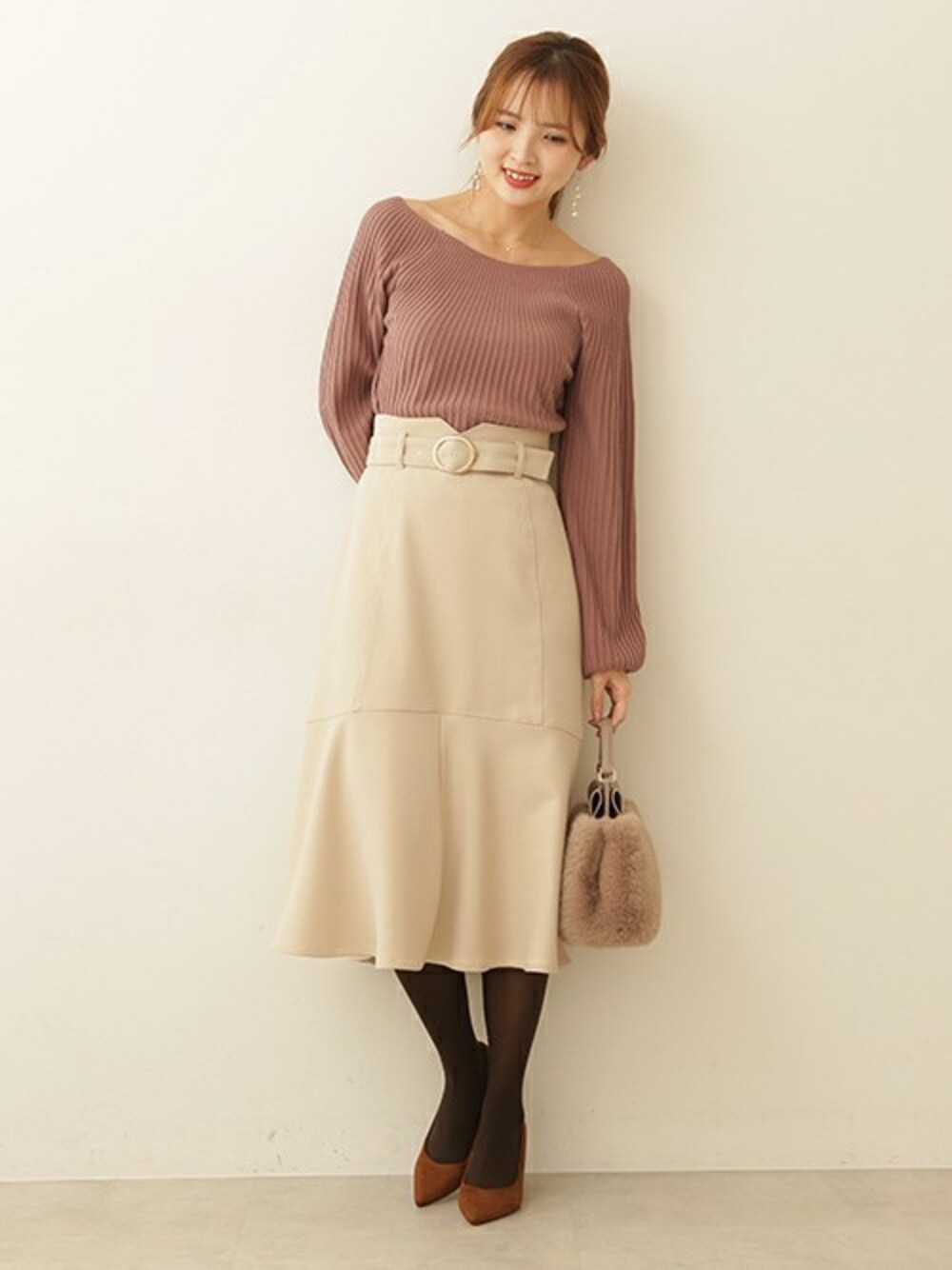 PROPORTION STAFF(PROPORTION BODY DRESSING)のニット/セーター「バックリボンボリュームスリーブリブニット」を使ったコーディネート