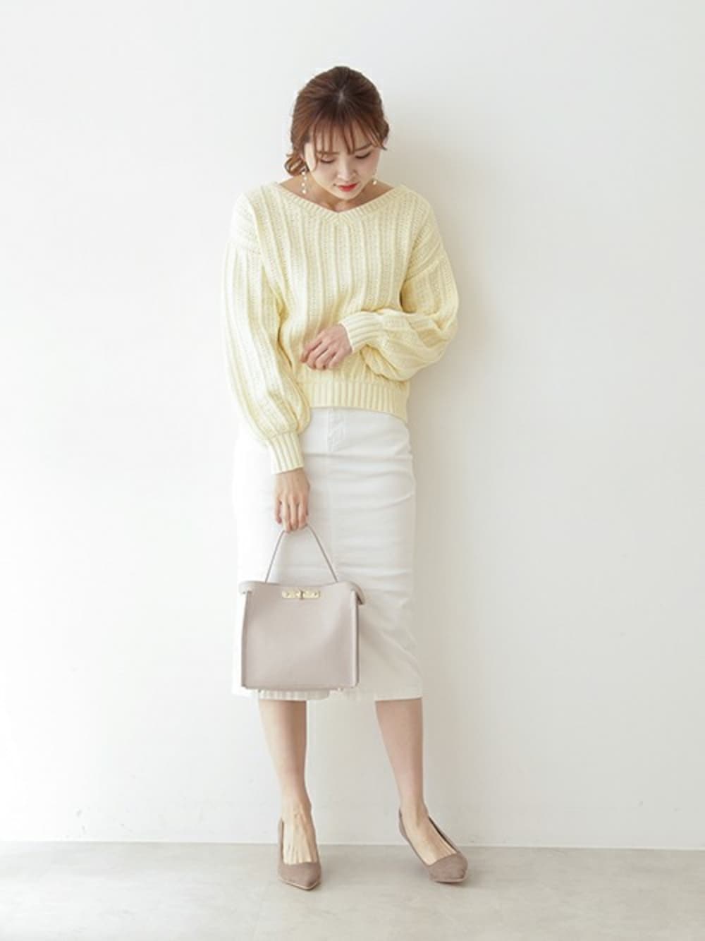 PROPORTION STAFF(PROPORTION BODY DRESSING)のニット/セーター「Vネックパフスリーブバルキーニット」を使ったコーディネート