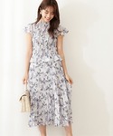 ニュアンスカラーのぼかしフラワーが今っぽい♡ プロポーションオリジナル柄のスカートです! 程よく鎖骨を綺麗に魅せてくれるフレアスリーブトップスに、 太めのベルトを占めて甘さ控えめの大人モノトーンコーデです!