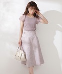 フリル袖がポイントのニットは、リブニットでもピタッとしすぎず着やすいシルエットになってます! ジャガードが高見えするスカートは落ち着いたフレアシルエットが上品見え♡