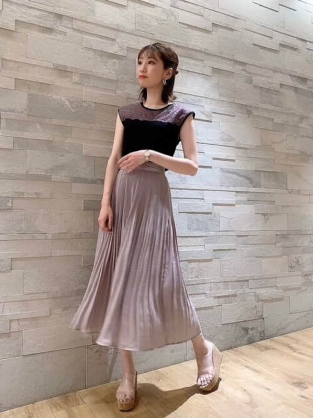 デコルテに施されたレースが顔周りを華やかに見せてくれるリブカットソーです! 重くなりがちなブラックも配色レースの切り替えでシンプルになりすぎずお洒落見え♡ エアリーなプリーツスカートと合わせることで、夏らしい爽やかなコーデに仕上がります!