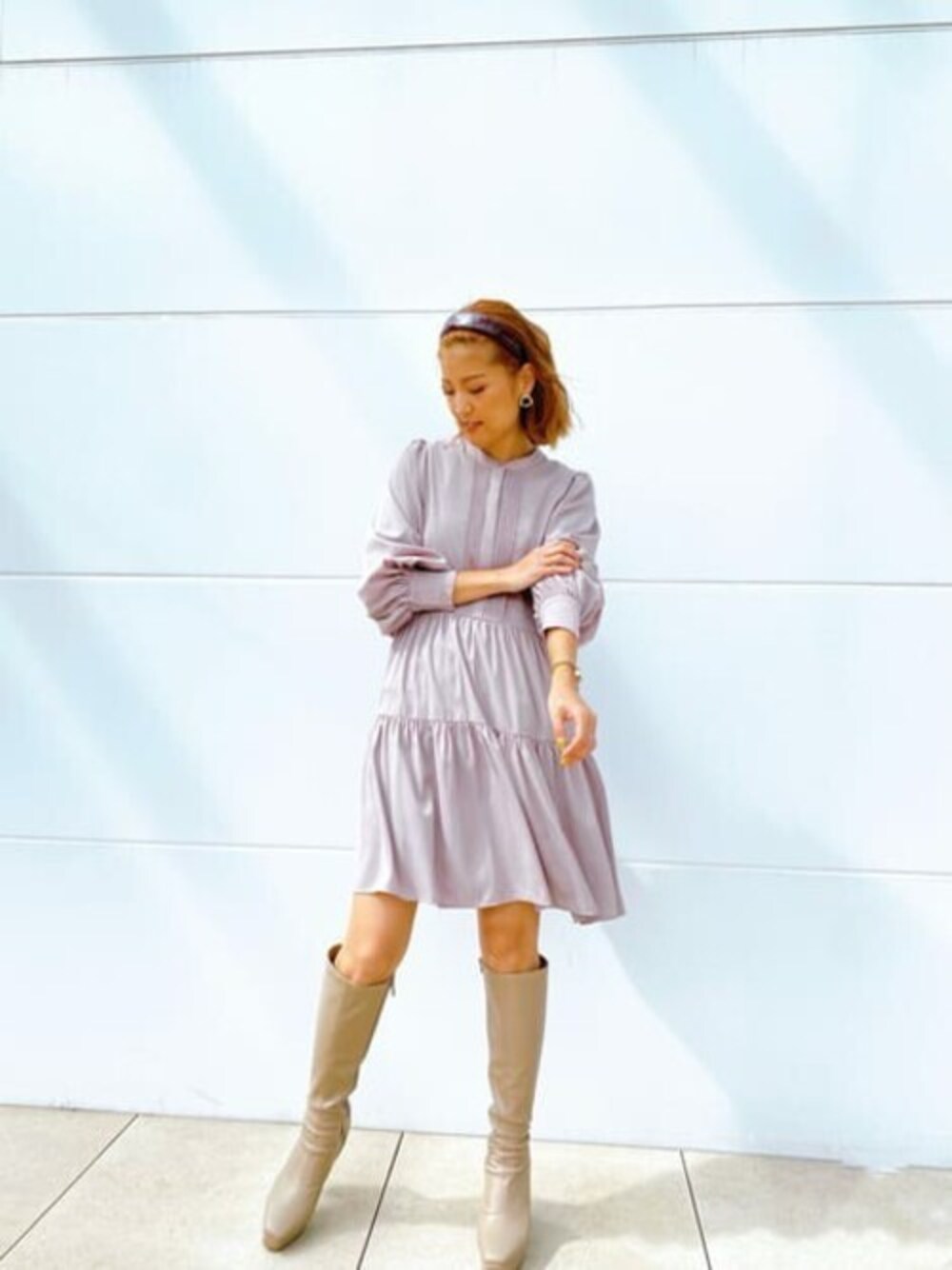 トレンド間違いなしのティアードミニワンピース♡ ロングブーツ合わせはもちろん可愛いですが、ショートブーツや、パンツを合わせたスタイルも◎。 袖口のボリューム感と、胸元のタックデザインが高見えポイント♡ 首元はバンドカラーになっていて、大人可愛い仕上がりです♡