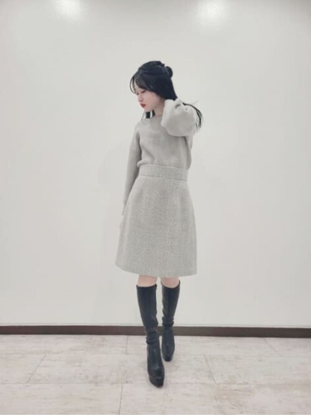 冬だからこそのパステルカラー♡ 短すぎない台形ミニは、ツイード素材で大人な高級感をプラス。 チクチクしない優しい風合いのニットはラメ糸仕様で冬のイベントも盛り上がりそう♪