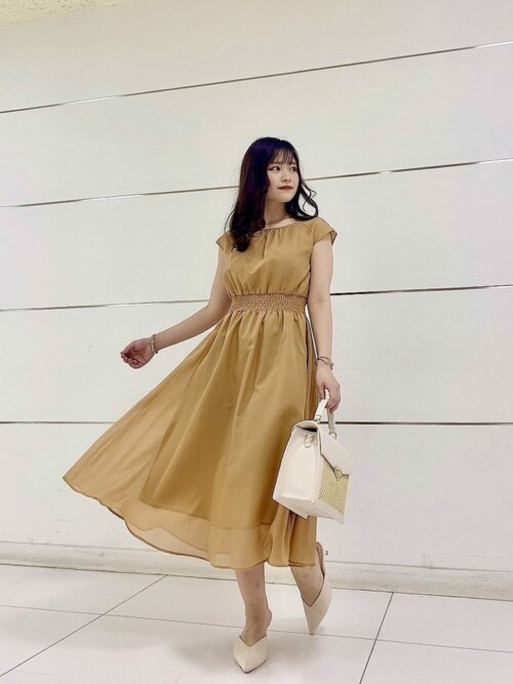 身長:155cm / 骨格:ウェーブ 【着用サイズ 】ワンピース:S 【普段サイズ 】ワンピース:S 〈ワンピース〉 清涼感と上品さを感じるワンピースは、夏に向けてオンオフで活躍してくれます♪ ウエストはぐるりとシャーリングゴム仕様なので、着心地が良く女性らしいメリハリをプラスしてくれます♡ フレンチスリーブで肩まわりをカバーしつつ、着丈が短めなのが低身長さんに嬉しいポイント◎