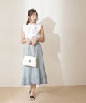 158cm/骨格ストレート/イエベ春 【着用サイズ】ブラウス:FR スカート:M 【普段サイズ】ブラウス:S スカート:S 《トップス》 可愛らしいフリルネックが女性らしいトップスです♡ サラサラの素材感で真夏まで涼しく着用頂けます♪ 今年トレンドのパフスリーブも程よく取り入れて頂けます♡ 《スカート》 ハイウエストでスタイルもスッキリ見え、程よいマーメイドラインが腰回りも気になることなくお召し頂けます! 裾の刺繍がプロポーションらしい上品な程よいデザインになっているためお仕事着にもお使い頂けます♪