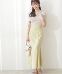 身長:155cm / 骨格:ウェーブ 【着用サイズ 】トップス:M、スカート:M 【普段サイズ 】トップス:S、スカート:S 〈トップス〉 ボウタイが今年らしく、アクセントになるブラウス♡ 甘めが苦手な方は、ボウタイを後ろに持ってくるのがおすすめです! 袖は2段のフリルデザインが二の腕をカバーしてくれるのが嬉しいポイント◎ 〈スカート〉 裾まわりでフレアに広がるマーメイドラインは、動きに合わせた揺れ感が女性らしさを演出してくれます♡ 深めのバックスリットが入っているので歩きやすく、着丈が長めでも気にならずにお召しいただけます♪ 裏地付きなのも安心◎
