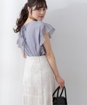 162cm / 骨格ナチュラル / ブルベ冬 【着用サイズ 】ブラウス:M スカート:S 【普段サイズ 】トップス:S ボトムス:S 《ブラウス》 落ち感のあるラッフルスリーブブラウスが二の腕をカバーしてくれます! 首元も開きすぎていないので、オンオフ兼用でおすすめ◎ バックスタイルに施されたリボンは小ぶりで甘くなりすぎず、さり気ないワンポイントなので、落ち着いた配色の花柄スカートとも上品に大人可愛く着て頂けます♡ 《スカート》 落ち着いた配色の小花柄プリントが大人可愛いスカートです! 着丈も短くXSサイズから展開があるので、小柄な方にもおすすめです◎ お手入れもしやすいシワになりにくいサラッとした生地感なので、今から真夏まで長く着用頂けます!