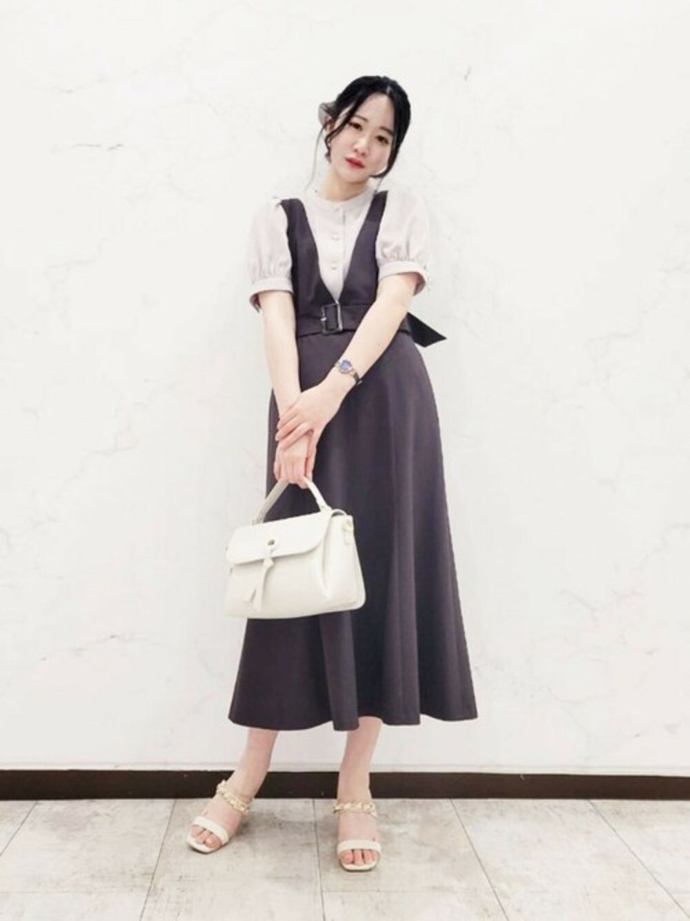 身長:157cm/骨格ウェーブ/ブルベ夏(ミューテッドサマー) 普段サイズ:XS~S 着用サイズ:S サイズ感 すっきりとしたシルエットのジャンパースカートです。 マーメイドシルエットですが、骨格ウェーブさんでも腰の張りを気にせずお召し頂ける緩やかなラインが魅力です。 着心地 柔らかな素材なので、上品な印象を与えつつもリラックスして着用頂けます。 今から晩夏まで長く使える、涼やかさとカラーのバランスが絶妙です。