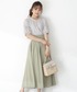 身長:157cm/骨格ウェーブ/ブルベ夏(ミューテッドサマー) 【普段サイズ】XS~S 【着用サイズ】S フェミニンかつトレンド感ある休日コーデ。 上下ともに清涼感のある素材ながら、シックなカラーなので、ジャストから晩夏、秋口も大活躍間違いなしです。 スカートは大人気につき追加生産されましたが、早速数少なくなっています♡