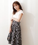 身長:155cm / 骨格:ウェーブ 【着用サイズ 】トップス:FR、スカート:M 【普段サイズ 】トップス:S、スカート:S 〈ニット〉 サイズ感は程よくゆとりがあります! デコルテが綺麗に見えるハートカットが、シンプルながらに女性らしい一枚です♡ 肩先が隠れるフレンチスリーブなので、二の腕をカバーしてくれるのも嬉しいポイント♪ ボトムを選ばず、オンオフ使えるので着回し抜群です◎ 〈スカート〉 サラッと軽やかな素材なので、夏場も涼しげにお召しいただけます♪ アシンメトリーな切り替えが動くたびにふんわり揺れ、女性らしいシルエットな一枚です♡ Tシャツを合わせてカジュアルに着こなすのもおすすめです!