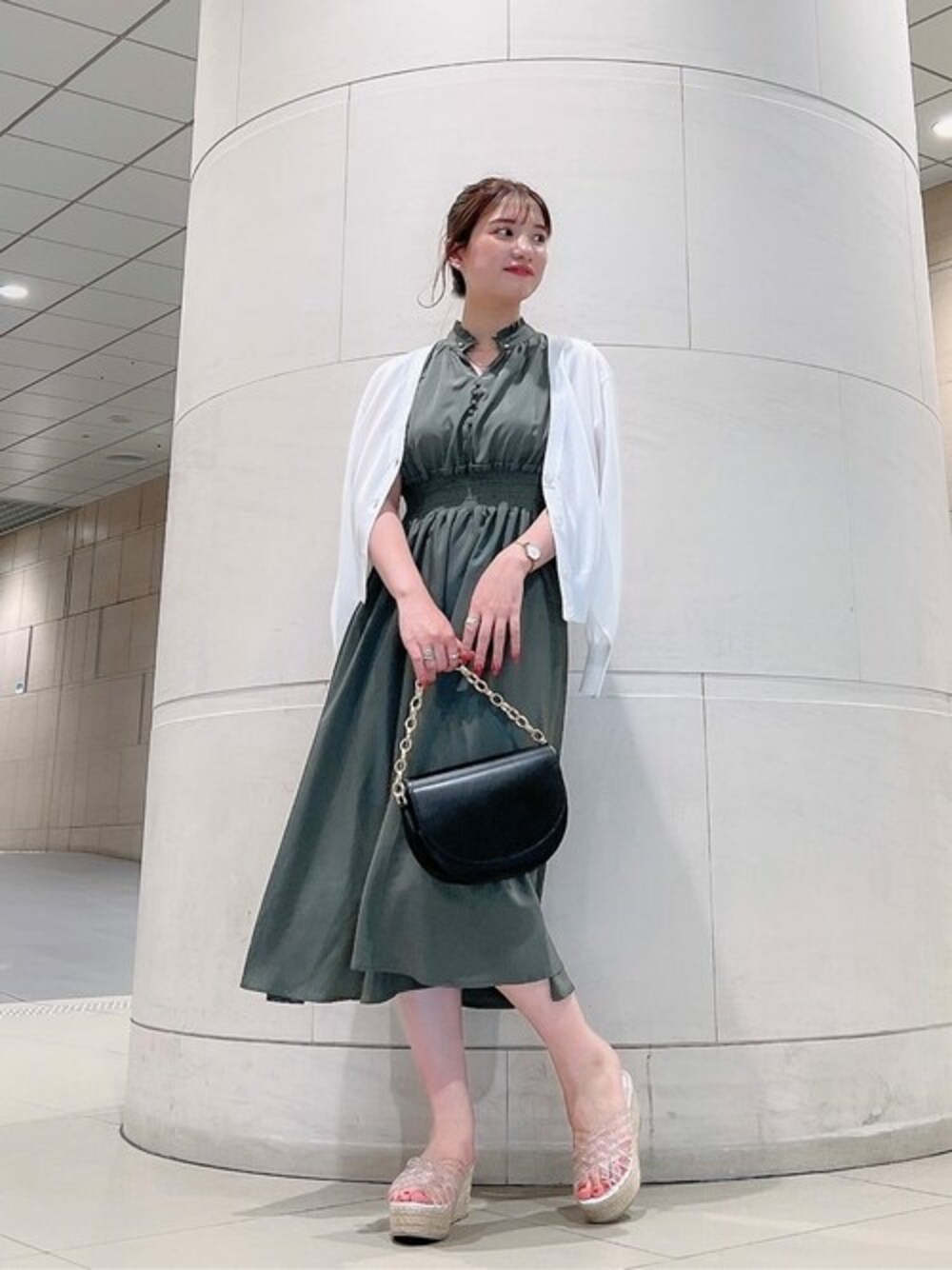158cm/骨格ストレート/イエベ春 【着用サイズ】ワンピース:M 【普段サイズ】ワンピース:S サラッとした素材が夏にぴったり♡ ウエストがゴムなので締め付けなく着ていただけます。 胸元のチェーンがワンポイントになっていて女性らしいです♡ 着用のカーキ色は落ち着いたカラーで大人ぽく、お仕事でも使って頂けると思います♪