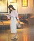 162cm / 骨格ナチュラル / ブルベ冬 【着用サイズ 】ブラウス:M スカート:S 【普段サイズ 】トップス:S ボトムス:S 《ブラウス》 サラっとした肌触りが、秋まで着心地の良いブラウスです! 襟ぐりは程よく開いているので、顔まわりもスッキリとした大人な印象に♡ お袖にたっぷり施されたフリルデザインが一枚で着映えするので、ツイード×ラッフル合わせなら程よく甘さのあるトレンドコーデに◎ 大人可愛いピンクは、ON/OFFで使い分けのできる万能カラーです! 《スカート》 高見えするツイード素材は、クラシカルムードを高めてくれる秋冬マストのトレンドアイテムです♡ タイトシルエットは大人っぽさもあり、ON/OFFどちらにもお使いいただけます♪ 太めのウエストマークでメリハリが効き、スタイルアップ効果にも◎ ツイードですが生地も厚すぎない為、ブラウスからニットまで幅広いトップスと組み合わせていただけます!