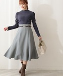 162cm / 骨格ナチュラル / ブルベ冬 【着用サイズ 】ニット:M スカート:S 【普段サイズ 】トップス:S ボトムス:S 《ニット》 程よいハートネックラインがデコルテラインを上品見せ♡ ちらっと見えるチェーンもさりげなく女っぽさのある一枚です! 少し青みのあるネイビーは、落ち着きもありつつお肌を白く見せてくれます。 チェーンも映える配色なので、顔まわりをより華やかな印象に♪ 体のラインを拾いすぎないボリュームスリーブなので、二の腕カバーも◎ 《スカート》 ふんわり広がるフレアシルエットが華やかな一枚。 ハイウエスト&ウエストのベルトがワンポイントになるので、脚長効果やスタイルアップも◎ ウエストベルトは取り外し可能なので、シンプルなフレアスカートとしてもご着用いただけます! 一枚あるとオンオフ兼用で着まわせるスカートです♡