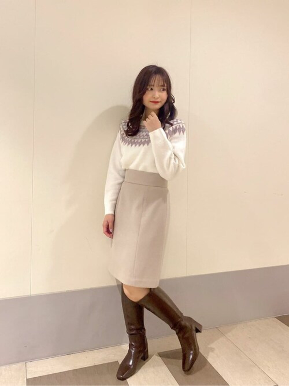 身長:155cm / 骨格:ウェーブ 【着用サイズ】ニット:FR、スカート:M 【普段サイズ】トップス:S、スカート:S 〈ニット〉 ふわっとしたフェザーと、ノルディック柄が冬にぴったりなニットです! さりげなくラメ糸が使用されているので、キラッと上品にお召しいただけます♪ カジュアルにも上品にもお使いいただけるニットはデイリーに活躍してくれます♡ 〈スカート〉 今年らしいミニ丈を大人っぽく取り入れられるシンプルなデザインです♪ ヒップラインを程よくカバーしてくれる台形のシルエットと、ハイウエストで腰の位置を高く見せてくれるのもポイント◎ 裏地付きなので、安心して着用していただけます!
