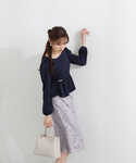 158cm/骨格ストレート/イエベ春 【着用サイズ】ニット:FR スカート:M 【普段サイズ】ニット:S スカート:S 《ニット》 華やかなラッフルデザインが可愛らしいニットです♡ 袖部分は、ブラウス生地になっているので、ふんわりとした優しい印象にしてくれます! 身頃は、大きすぎず身体に程よくフィットするシルエットになっているので、ボトムスを選ばずすっきりお召し頂けます♪ 《スカート》 プロポーションでは定番のレーススカート♡ ふんわりとしたプロポーションオリジナルのカラー展開が春にぴったりです♪ 程よい華やかさが上品な印象にしてくれます! 小柄な方でもお召し頂きやすいフィット感や丈感になっています。