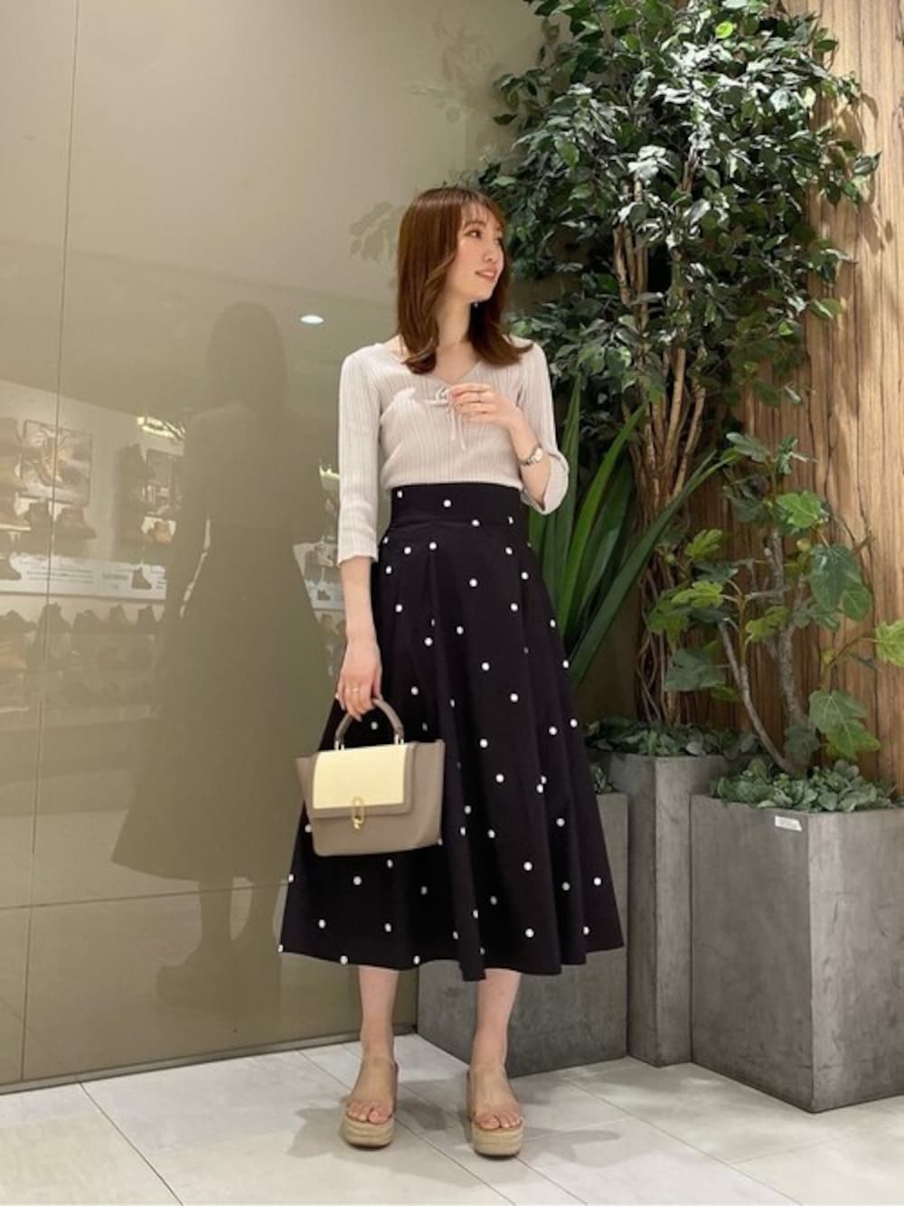 ig:proportionbodydressing ♡ STAFF身長:162cm / 骨格ナチュラル / ブルベ冬 【着用サイズ 】ニット:FR スカート:S 【普段サイズ 】トップス:S ボトムス:S 《ニット》 すっきりとしたVネックと胸元のリボンが大人可愛いニットです♡ 少し短めの袖丈で、レーヨン×ナイロンの清涼感のある生地感が初夏にかけて長くお使いいただけます。 着回し力抜群のグレーはどんなボトムとも相性◎ 《スカート》 程よいハリ感があり、サラッとした肌触りのスカートです! 大きめのタックが入っていて生地もふんだんに使っているので、ふんわりとした華やかなフレアラインに仕上げてくれます♡ 後ろにはゴムが入っているので着心地も抜群です◎