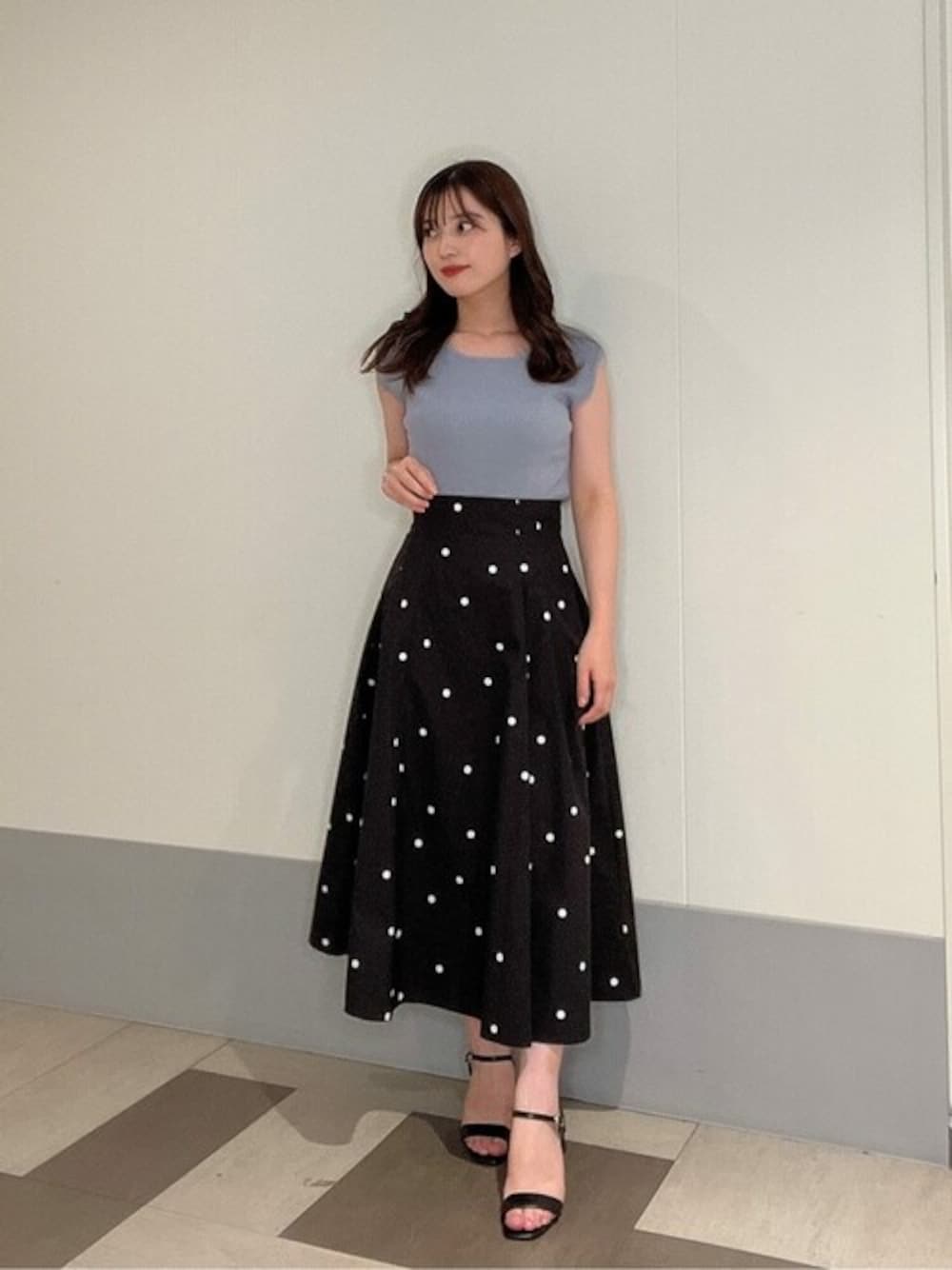 ig:proportionbodydressing ♡ STAFF身長:158cm/骨格ストレート/イエベ春 【着用サイズ】ニット:M スカート:M 【普段サイズ】ニット:S スカート:S 《ニット》 ノースリーブとカーディガンがセットになっているので、今の季節に丁度いいアンサンブルニットです♡ 柔らかく、肌触りがいい素材なので夏場でもストレスなくお召し頂けます! カーディガンの袖口と裾の部分はシアーになっており、コーディネートのポイントになるかわいいデザインになっています♡ 《スカート》 ドットが華やかに見せてくれるタフタ素材のスカートです! 後ろにゴムが入っているので、楽にお召し頂けます♪ ハイウエストなのでスタイルも良く見せてくれます♪