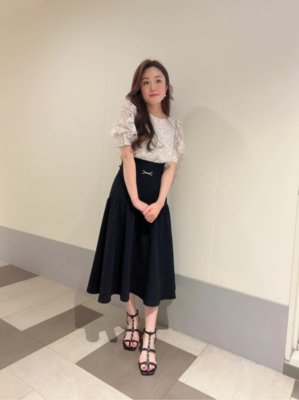 ig:proportionbodydressing ♡ STAFF身長:156cm/骨格ストレート/ブルベ夏 【着用サイズ】ブラウス:M スカート:M 【普段サイズ】ブラウス:S スカート:S 《ブラウス》 袖のラッフルと袖口のキラ釦が、顔周りを華やかにみせてくれます♡ 程よく透け感のあるシアーラッフルが、上品な印象を与えてくれます♡ 《スカート》 シンプルなスカートですが、ゴールドカラーパーツを付けたベルトがアクセントになり、インしたコーデがオシャレにきまります♡ 腰回りが程よくフィットしており、裾まわりがふわっと広がるシルエットなので、女性らしさを演出してくれます♡