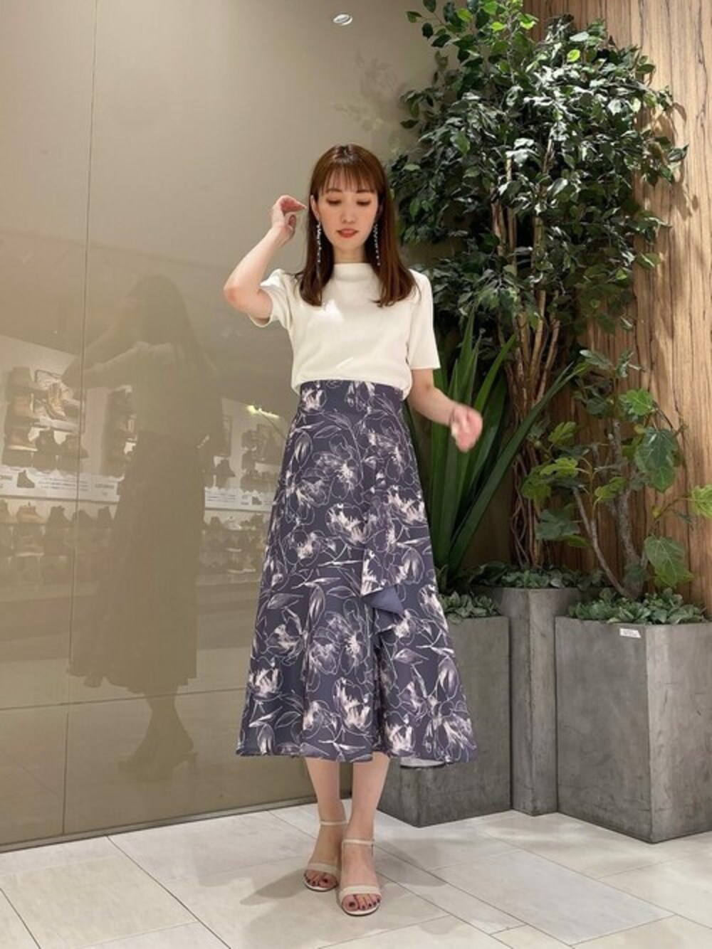 ig:proportionbodydressing ♡ STAFF身長:162cm / 骨格ナチュラル / ブルベ冬 【着用サイズ 】ニット:M スカート:S 【普段サイズ 】トップス:S ボトムス:S 《ニット》 シンプルでどんなボトムにも合わせやすい万能ニットが進化して再入荷♡ 背中の大きめボタンは透明感のあるシンプルデザインになり、大人っぽい印象に。 プチハイネックなので首元は苦しすぎず、袖丈も少し短く今から夏までの着まわせるコットンが含まれた素材になりました◎ 《スカート》 ラッフルディテールの施されたマーメイドデザインが女性らしさ満載♡ 歩くと軽やかに揺れるシルエットが上品さのある一枚です。 小柄なお客様も挑戦しやすい短めの着丈なので、足元をすっきり見せてくれます! 晩夏まで着回しやすいチャコールのお色味は、トップスをどんなカラーに変えても相性◎