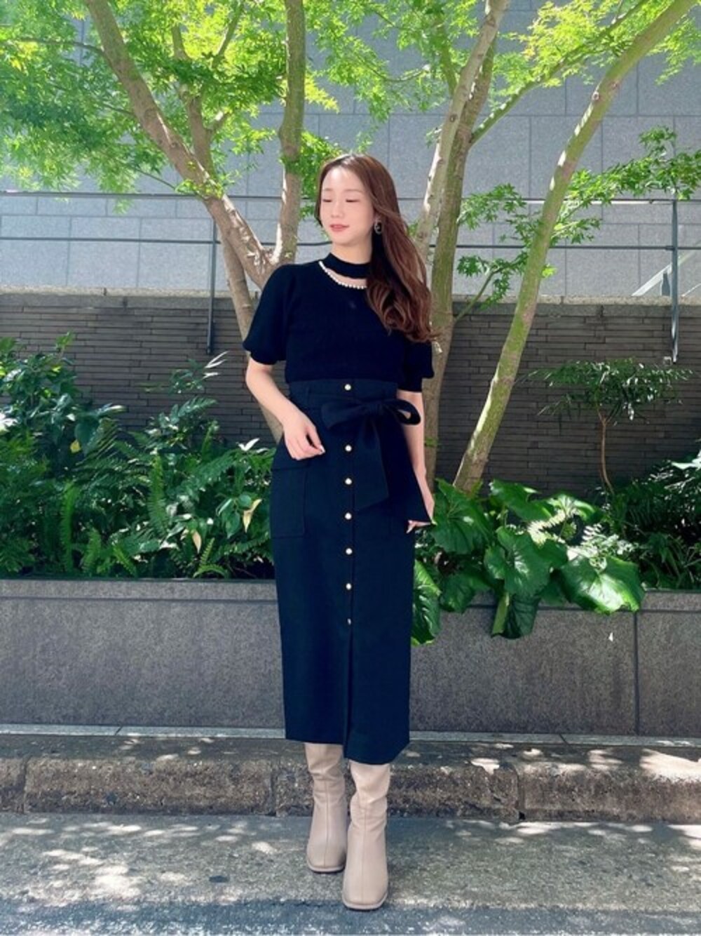 ig:proportionbodydressing ♡ STAFF身長:153㎝ 【普段サイズ】XS、S、PS 【着用サイズ】ニット:S スカート:PS(※) (※)PSサイズ:around 150cm前後 = petite size(プチサイズ) ■オンライン・限定店舗の限定販売■ ファッションを楽しむ身長150cm前後の小柄な女性に向けたサイズです♪ PSサイズはPROPORTION BODY DRESSING公式サイトにてお取り扱いしております。 ZOZOでは、S、Mサイズのみのお取り扱いとなります。 <ニット> 程よいカットワークとパールデザインで、グッとトレンド感の上がるパールニットです♡ ナチュラルなパフスリーブは今からの季節に活躍する五分袖デザイン◎ レーヨン混なのでもっちりとした肌触りも着やすいポイントです。 <スカート> フロントの金釦が上品さを格上げしてくれるタイトスカートです♡ 膝が見え隠れするスリットで足さばきもよく、腰周りのラインを拾いすぎないので着心地のいいアイテムです。 身長153cmでPSサイズを着用しており、着丈はふくらはぎ下あたりなのでパンプス合わせはもちろんブーツ合わせでもきれいめカジュアルに着こなしていただけます! PSサイズはPROPORTION BODY DRESSING公式サイトにてお取り扱いしております。 ZOZOでは、S、Mサイズのみのお取り扱いとなります。
