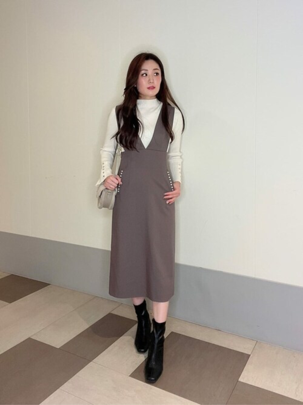 ig:proportionbodydressing ♡ STAFF身長:156cm 【着用サイズ】ニット:M ワンピース:M 【普段サイズ】ニット:S ワンピース:S 《ニット》 シンプルなデザインなので、着回し抜群な一枚です♡ リブニットなので、程よく体にフィットし女性らしいシルエットを演出してくれます♡ 《ワンピース》 ポケットのパールが、今年らしくてオシャレなタイトジャンパースカートです♡ 後ろは、肩紐が落ちないデザインになっているので安心してお召し頂けます♡