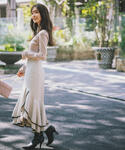 ig:proportionbodydressing ♡ STAFF身長:156cm 【着用サイズ】ニット:M カーディガン:M スカート:M 【普段サイズ】ニット:S カーディガン:S スカート:S 《ニット》 程よいフリルが大人可愛いニット。 すっきりとしたリブ編みで、体のラインを拾いすぎないシルエットで着ていただける嬉しいお作り♪ 伸縮性も抜群なのでずっと着ていたくなるような着心地の良い一枚です! ジャンパースカートのインナーに使うとレイヤードスタイルも楽しめる万能アイテムです♡ 《カーディガン》 今季大人気のフェザーカーディガン! 羽織るだけでぐっと今年らしいコーデにしてくれます♡ 腰が隠れるミドル丈なのでしっかり暖かいのも嬉しいポイントです♪ ワンピースやスカートスタイルの上にゆるっと羽織っていただくのがおすすめです♡ 《スカート》 温かみのある柔らかいモールレースが目を惹くマーメイドスカート! 腰まわりはすっきりしていて細見えしつつも、切り替え下からタックとギャザーが入っているので広がりのあるメリハリシルエットを演出してくれます♪ ふんわりとした風合いのニットと合わせることで季節感満載のあざと可愛いコーデが完成します♡