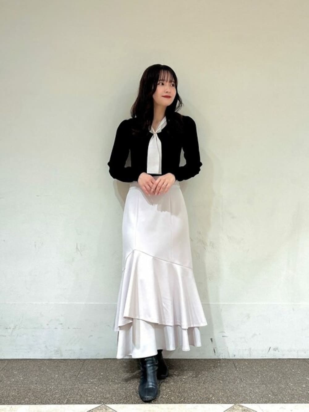 ig:proportionbodydressing ♡ STAFF身長:155cm 【着用サイズ】ニット:M、スカート:M 【普段サイズ】トップス:S、スカート:S 〈ニット〉 プロポーションで大人気のリング付きボウタイニットはバイカラーデザインになっており、大人かわいい1枚です♡ リングパーツは取り外しができ、着回しができるのが嬉しいポイントです♪ 〈スカート〉 裾が綺麗に動くドッキングマーメイドスカートは軽い生地を使用しているため、サラッと着ていただけます! ハイウエストなので、トップスをインして着るとスタイルアップが叶う1枚です♡