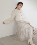 ig:proportionbodydressing ♡ STAFF身長:162cm 【着用サイズ 】ニット:FR スカート:M 【普段サイズ 】トップス:S ボトムス:S 《ニット》 襟まわりに施されたラッフルデザインが、華やかでトレンド見えする一枚。 ふわふわとした柔らかさが着心地も良いです! 身頃部分は程よいボリュームなので、ウエストインスタイルもしやすいのが嬉しいポイント◎ さりげない肌見せもできる女っぽさのあるニットです♪ 《スカート》 オーガンジー素材の程よいハリとボリュームのある広がりが華やかさを演出してくれます! すそ周りに透け感があるので、着丈が長くてもトレンド感があり、ふんわりとした動きを演出♡ 抜け感のあるグレーのお色味はどんなカラーとも相性の良い一枚です!