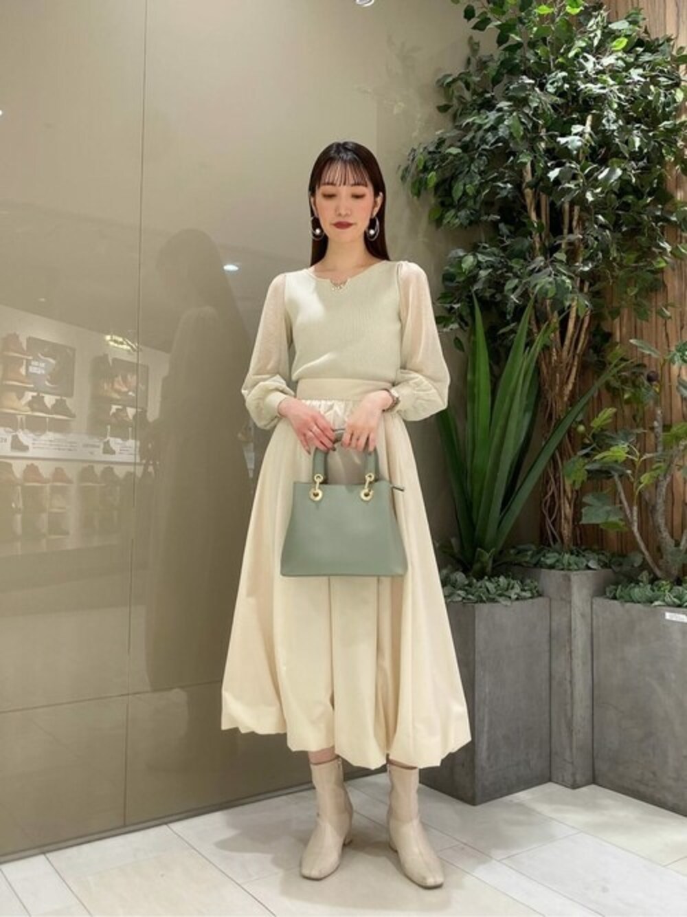 ig:proportionbodydressing ♡ STAFF身長:162cm 【着用サイズ 】ニット:M スカート:M 【普段サイズ 】トップス:S ボトムス:S 《ニット》 顔まわりをさりげなく華やかに見せてくれるビジューデザインは、アクセサリーいらずで可愛い一枚♡ ふんわり広がるお袖のシアー感も女性らしく抜け感を演出してくれます◎ 爽やかなイエローは色味も柔らかく、カラーアイテムでも優しい印象に仕上げてくれます! 《スカート》 ふわっとした広がりと丸みのあるバルーンシルエットがお洒落見え♡ シーズンレスでも着回しやすいタフタ素材は、今から取り入れやすい一枚です。 程よいハリがあり立体的に見せてくれるデザインなので、シンプルなアイテムと組み合わせても着映えします♪