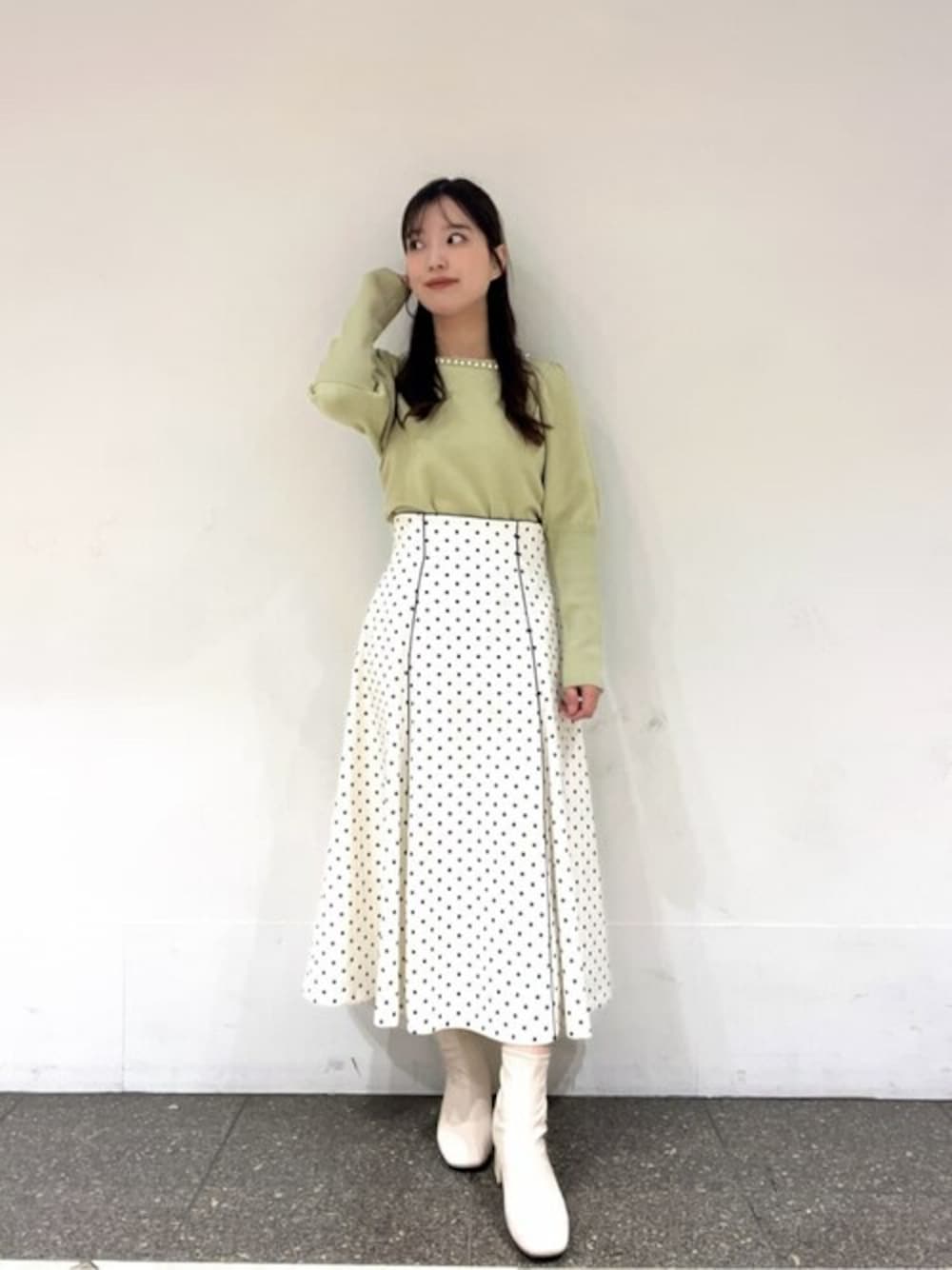 ig:proportionbodydressing ♡ STAFF身長:158cm 【着用サイズ】ニット:FR スカート:M 【普段サイズ】ニット:S スカート:S 《ニット》 胸元のパールデザインが顔映りを明るく華やかに見せてくれます! 着用カラーは、肌馴染みのいいニュアンスカラーなので取り入れるだけでお洒落にみせてくれます♡ 《スカート》 毎年大人気のドットスカートです♡ 大きすぎないドットが大人っぽくお召し頂けます! パイピングのラインが施されているのでシルエットも綺麗にお召し頂けます♪