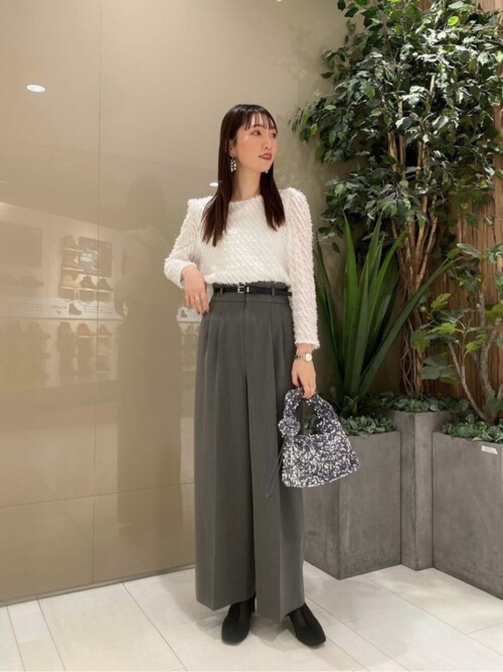 ig:proportionbodydressing ♡ STAFF身長:162cm 【着用サイズ 】ブラウス:FR パンツ:M 【普段サイズ 】トップス:S ボトムス:S 《ブラウス》 カットジャガードのふわっとした風合いが大人っぽい着こなしを叶えてくれます♪ 着るだけでこなれ感も出るので、シンプルなコーデに取り入れるだけでぐっとお洒落な印象にも◎ 軽くて着心地も良い素材なので着回しやすく、一枚あるとコーデの幅も広がる万能ブラウスです! 《パンツ》 センタープレスが施され、すとんと落ち感のある生地が縦ラインを綺麗に見せてくれます! お洒落に着こなせるグレーの色味はモード感もあり大人っぽさを演出◎ 程よく広がるワイドシルエットなので動きやすく、ON・OFFともに着まわせます。