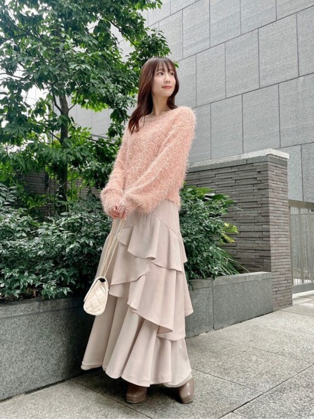 ig:proportionbodydressing ♡ STAFF身長:153㎝ 【着用サイズ】トップス:FR、スカート:S 【普段サイズ】XS、S、PS <ニット> 春先のコーデに取り入れたいコーラルピンクのニットです♡ たぷっとした袖で可愛らしさもあり、身幅はスッキリとしているので着膨れしない所もポイント。 インナーを着込めばジャストに着ていただける1枚です♡ <スカート> アシンメトリーになったティアードデザインが目を引きつけるスカートです◎ バックゴムデザインで着心地も良く、お出かけコーデにピッタリ。 身長153cmでSサイズを着用しており、着丈はくるぶしの長さです。