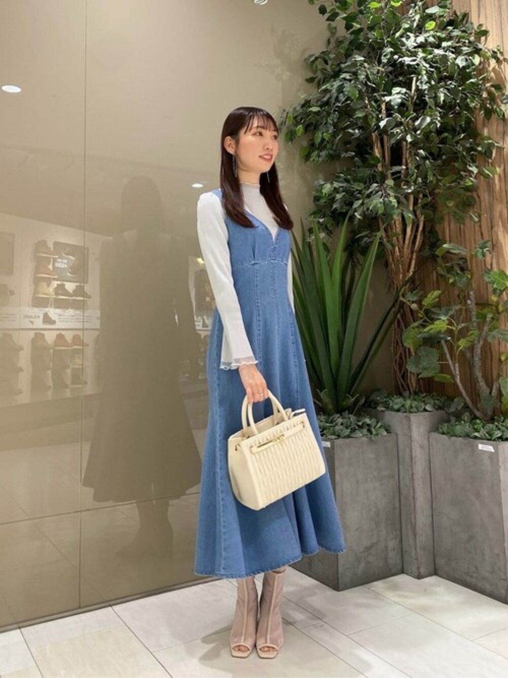 ig:proportionbodydressing ♡ STAFF身長:162cm 【着用サイズ 】ニット:M ジャンスカ:M 【普段サイズ 】トップス:S ワンピース:S 《ニット》 細めのリブ編みと柔らかい生地感が上半身をすっきり見せてくれます! 首元と袖口に施されたシアーデザインが、上品で春らしい印象に◎ インナーとしても一枚でも着映えするので、着回し力も高いトップスです! 《ジャンスカ》 着るだけで美シルエットに見せてくれる♡ 柔らかい生地感が着心地良いデニムジャンスカです! 今年は胸元をキレイに見せてくれるカッティング仕様と、後ろ姿まで可愛いバッククロスデザインがワンポイントに。 インナーを変えて夏まで着ていただけます!