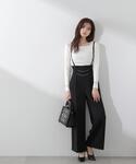 ig:proportionbodydressing ♡ STAFF身長:162cm 【着用サイズ 】ニット:M パンツ:S ジレ:FR 【普段サイズ 】トップス:S ボトムス:S アウター:S 《ニット》 細めのリブ編みと柔らかい生地感が上半身をすっきり見せてくれます! 首元と袖口に施されたシアーデザインが、上品で春らしい印象に◎ インナーとしても一枚でも着映えするので、着回し力も高いトップスです! 《パンツ》 取り外し可能なチェーンディテールが、脚長効果のあるワンポイントに♡ センタープレスラインや高めのウエスト位置が縦ラインをすっきり見せてくれるシルエットなので、上品できちんと感も演出してくれます。 大人っぽく綺麗めに仕上がるブラックは、ON・OFF兼用でもおすすめです◎ 《ジレ》 羽織としても一枚着でもお洒落なムードを高めてくれるジレは、綺麗めカジュアルともに着回しやすいです♡ 短丈ですっきりとしたシルエットは、ボトム次第できちんと感のある着こなしも叶うのでシーンを選ばず取り入れていただけます!