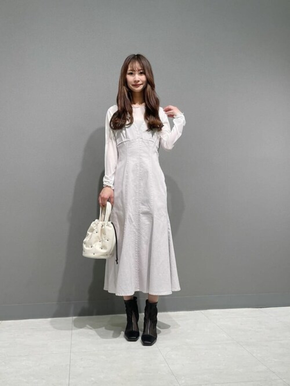 ig:proportionbodydressing ♡ STAFF身長:160cm 【着用サイズ】ワンピース:M/カットソー:FR 【普段サイズ】ワンピース:S 計算された美シルエットでカジュアルすぎずに着られるデニムジャンスカ♡ 高い位置でのウエスト切替と程よいボリューム感のスカートでカジュアルさとフェミニンさの両立が叶う1枚です!! バックデザインにも拘っており後ろ姿も可愛く着ていただけます◎