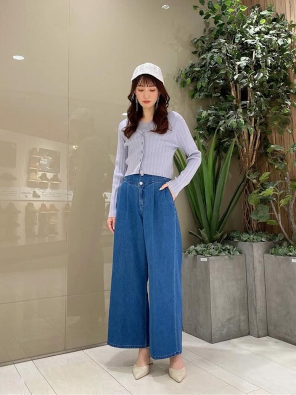 ig:proportionbodydressing ♡ STAFF身長:162cm 【着用サイズ 】ニット:M/パンツ:M 【普段サイズ 】トップス:S /ボトムス:S 《ニット》 春らしい爽やかなブルーはきちんと感もあり明るい印象に見せてくれます♡ インナーとカーデはそれぞれ単品でも着回しやすいシルエットに拘った上品な一枚です。 着丈もコンパクトなのでウエストイン・アウト共にすっきりご着用いただけます! 《パンツ》 コルセット風デザインが今っぽく、高めのウエスト位置が着痩せ効果を高めてくれます! 広がりすぎないワイドパンツは、女性らしいスタイリッシュな印象を見せつつ取り入れるだけでカジュアルな着こなしに◎ ブルーデニムは春の定番アイテムとして、一枚あると着まわせるお色味です!