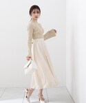 ig:proportionbodydressing ♡ STAFF身長:155cm 【着用サイズ】ニット:FR/スカート:M 【普段サイズ】トップス:S/スカート:S 〈ニット〉 シアーの糸が編み込まれているので、さりげないシャイニー感がシンプルながらも華やかにお召しいただけます♪ また、フレアスリーブの袖口には華奢なパール調のデザインが施されており、手元までおしゃれな印象に♡ ジャンパースカートのインナーとして合わせていただくのもおすすめです◎ 〈スカート〉 立体的なバルーンシルエットが魅力的なフレアスカートです♪ ハリのある素材でサラッと着心地が良く、シワになりにくいのが嬉しいポイント◎ シンプルなトップスを合わせてもおしゃれに決まります!
