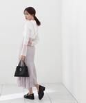 ig:proportionbodydressing ♡ STAFF身長:158cm 【着用サイズ】ブラウス:S/スカート:M 【普段サイズ】ブラウス:S/スカート:S 《ブラウス》 シンプルなボウタイデザインがオンオフ着回しのきく一枚です♪ 襟ぐりのカッティングが特徴になっています! アクセントにボタンもついており女性らしいデザインになっています♪ 《スカート》 チェーンサスペンダー付きのスカートで、取り外しも可能なので沢山着回しして頂けます♪ 春らしいシアー感とさりげないドットデザインが大人可愛くお召し頂けます♪