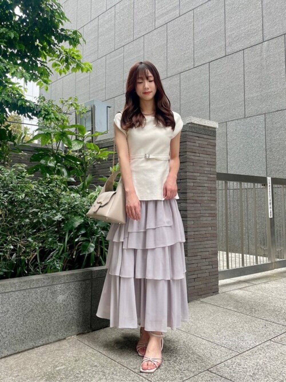 STAFF身長:153cm 【着用サイズ】トップス:FR /スカート:M 《ペプラムニット》 程よいぺプラムデザインが今年らしいニットです♡ ぺプラムは広がりすぎずハイウエストベルトなので、骨格ウェーブさんやぺプラムが苦手な方でも挑戦しやすいアイテム◎ 《ランダムティアードスカート》 ランダムに施されたティアードデザインが華やかみえバツグンなスカートです♡ ティアードの切り替えが高めなので、スタイルアップ間違い無しの嬉しいデザイン◎ オリジナルカラーのラベンダーは淡いニュアンスカラーで、程よいフェミニン感を演出してくれます♡ 身長153センチでMサイズを着用しており、着丈はくるぶし程とトレンドのロング丈です。