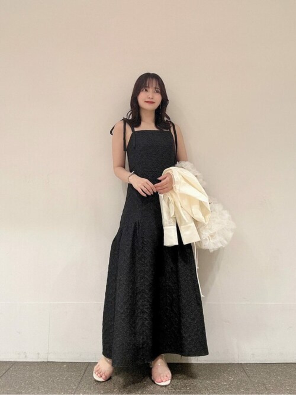 STAFF身長:156cm 【着用サイズ】ワンピース:M 《ワンピース》 肩リボンが今年らしいキャミワンピースです♡ サイドに切り替えがあることで、ボリュームが出過ぎずキレイなシルエットでお召しいただけます! 後ろはゴム入りなので着心地も抜群です!