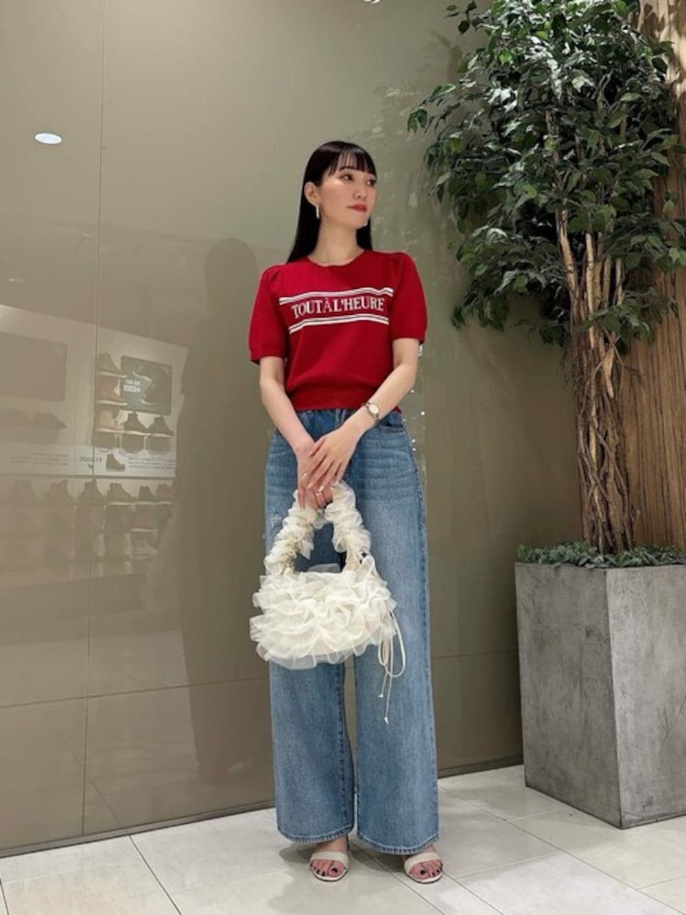 STAFF身長:162cm 【着用サイズ 】ニット:FR パンツ:S 《ニット》 大きめのロゴデザインがアクセントになり、今っぽく仕上がるジャガード編みのニットです! 大人も着こなせる鮮やかなレッドの色味は一枚で着映えすること間違いなし◎ 裾にはリブが施されているので、ウエストアウトでも綺麗に着ていただけます! 《パンツ》 ヒップまわりをすっきり見せ、リラックス感のあるデニムパンツです♡ 縦ラインを綺麗に仕上げてくれる脚長効果も◎ コットンを多く含む素材なので、シーズンレスで着まわせます。 トレンド感もありトップスを選ばないアイテムなので、この時期から取り入れやすい一枚です!