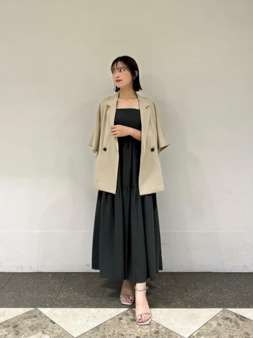 STAFF身長:158cm 【着用サイズ】ワンピース:S/ジャケット:S 《ワンピース》 トレンドのティアードを取り入れたキャミワンピース♡ 広がりをおさえたシルエットなので、可愛くなりすぎず大人可愛くお召し頂けます♪ 軽くシワになりにくい素材なので、旅行にもピッタリなワンピースです! 《ジャケット》 羽織るだけでお洒落見えするジャケット♡ 少しオーバーサイズなのが今年らしいシルエットになっています! サラッとしているので、夏の羽織としても活躍してくれます♪